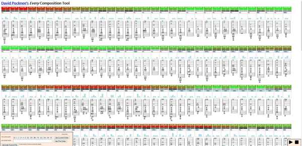 A tool designed to help compose my guitar piece "Every", by allowing the user to drag and drop all 319 chords in the piece into an order of their choice. A sythesized version of the re-ordered piece (algorithmically spliced together from samples) can then be played back by clicking the play and stop buttons in the bottom right of the window. The slider in the bottom left of the window can be used to choose the chord from which this playback starts. After the user has decided upon an order of chords that they like, it can be converted into musical notation in the liypond format by using the controls at the bottom of the window. This app was built with ReactJS and the webaudio API with a php backend.
