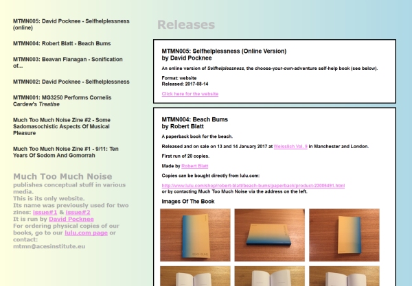 Much Too Much Noise website (2015)